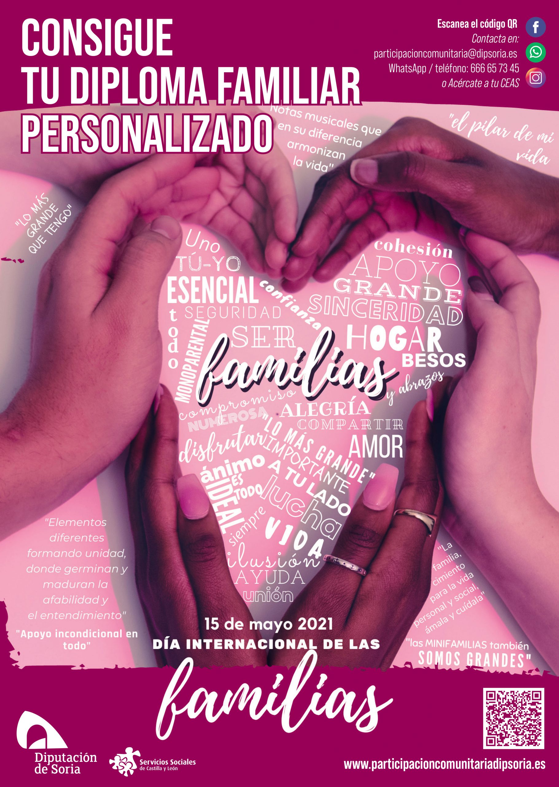 Desde el Departamento de Servicios Sociales celebramos el Día de la Familia, el 15 de Mayo. Este año queremos continuar reconociendo y reforzando la labor de apoyo que ésta presta a cada uno de sus miembros, como soporte social básico, en todas las circunstancias de la vida y potenciar el consenso y la comunicación entre los diferentes miembros de cada una de las familias de la provincia.