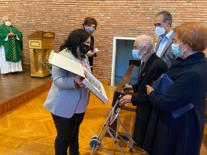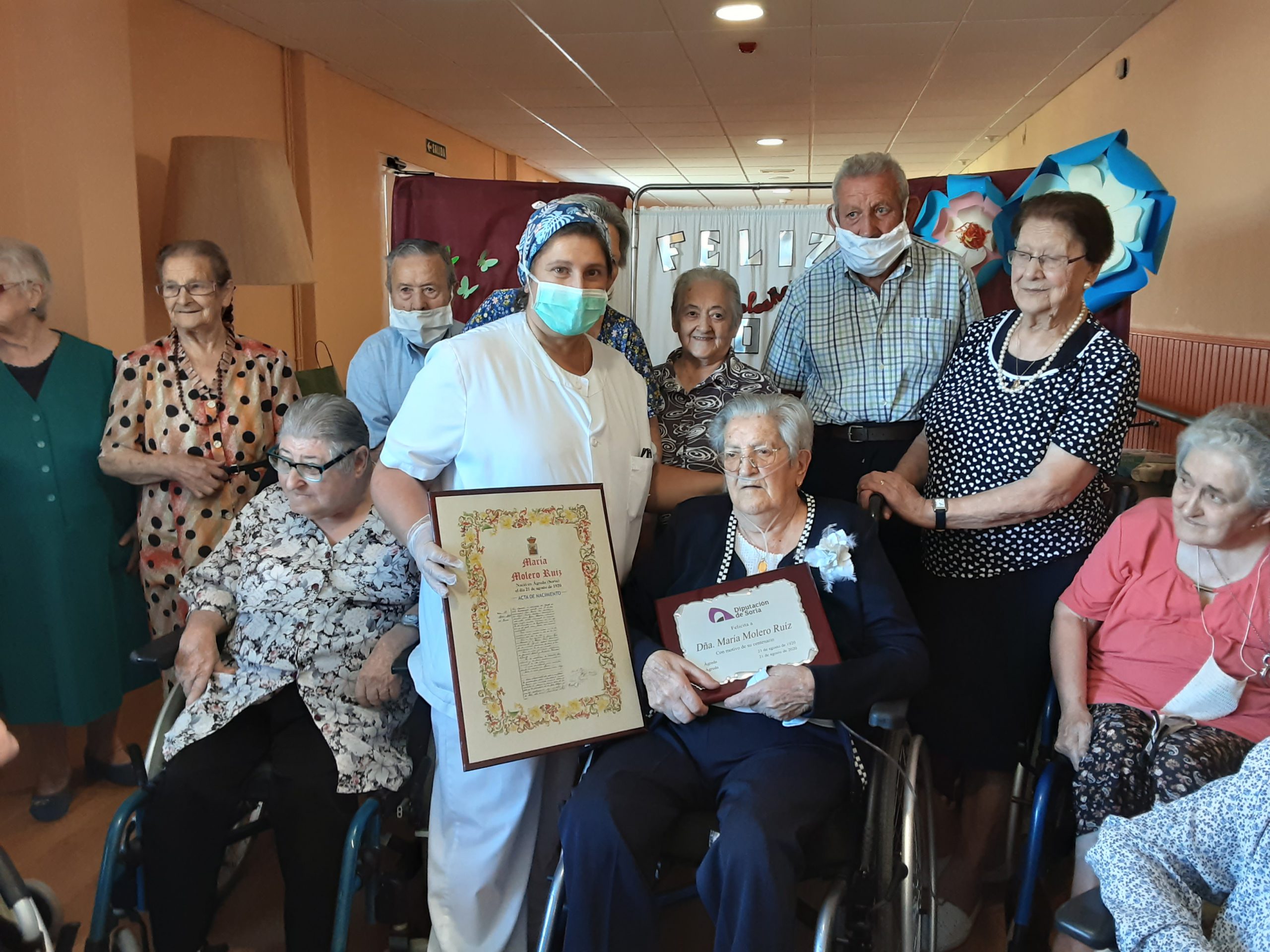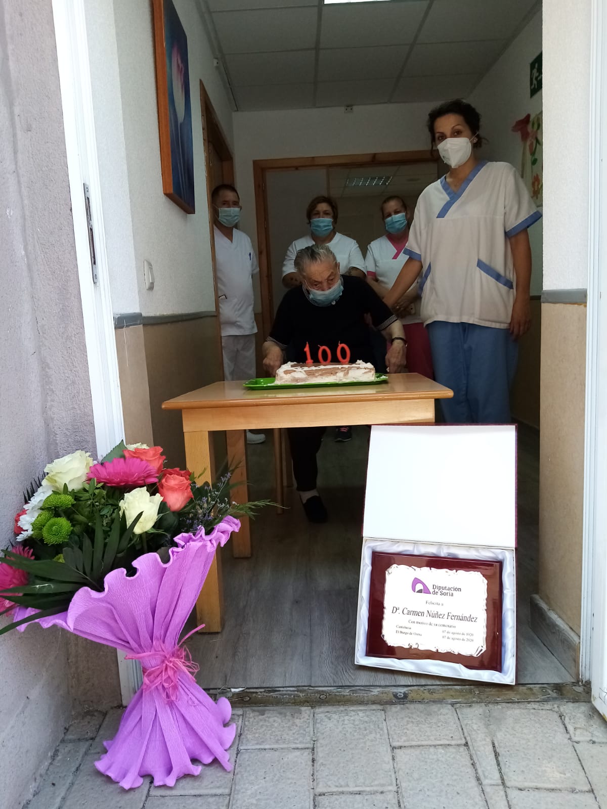 La diputada de Servicios Sociales le hizo la entrega de una placa conmemorativa y, su nieto y diputado de Cultura de la Institución Provincial, le entregó una copia de su acta de nacimiento. También el Ayuntamiento de Berlanga quiso homenajearle con un obsequio.